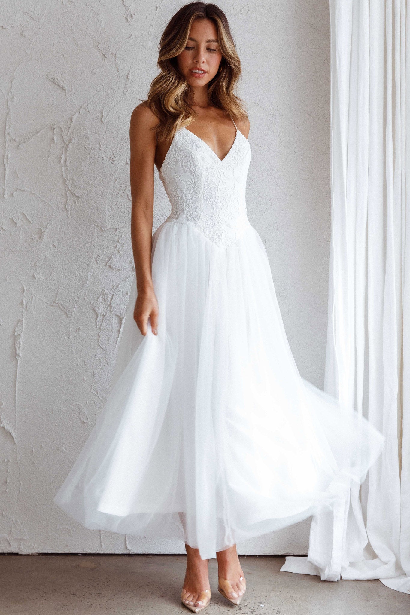 Make a grand entrance in our stunning Novoli midi dress. We are in love with its floral embroidery in the torso and elegant silhouette. Perfect for a wedding or prom teamed with tie-up heels and a satin clutch for a look that's fit for a princess.